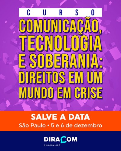O Diracom - Direito à Comunicação e Democracia - realizará em dezembro o curso “Comunicação, tecnologia e soberania: direitos em um mundo em crise”. A atividade visa reunir profissionais, pesquisadores e integrantes de entidades da sociedade civil e movimentos sociais para debater os desafios para uma comunicação e Internet mais democráticas e soberanas. É o segundo curso anual da organização. O curso ocorrerá de maneira presencial nos dias 5 e 6 de dezembro em São Paulo. Entre os temas estarão a geopolítica dos serviços digitais, a comunicação na disputa de hegemonia, audiovisual analógico e digital, regulações democráticas de plataformas digitais e da Inteligência Artificial e caminhos para desenvolver tecnologias mais soberanas e sustentáveis.
